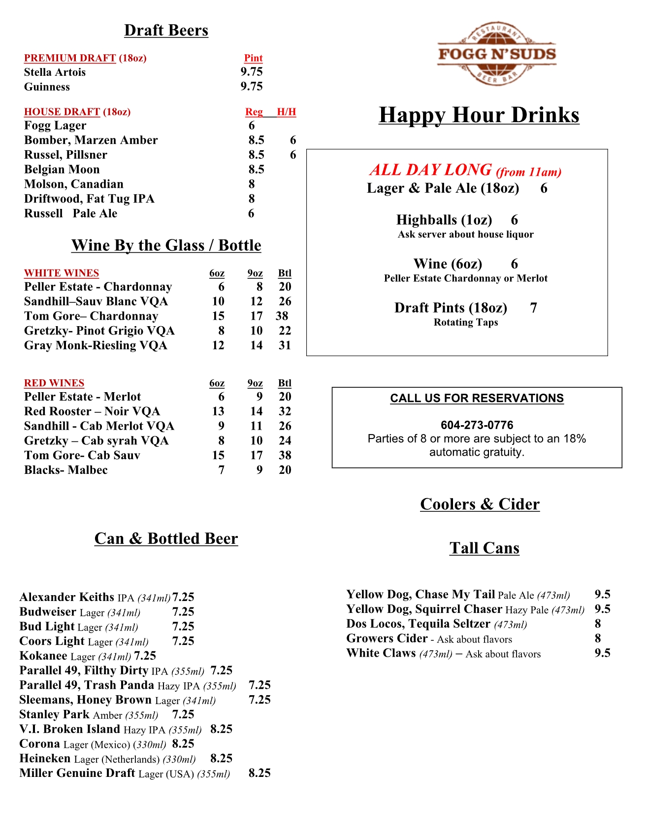 Beverages & Happy HOur
